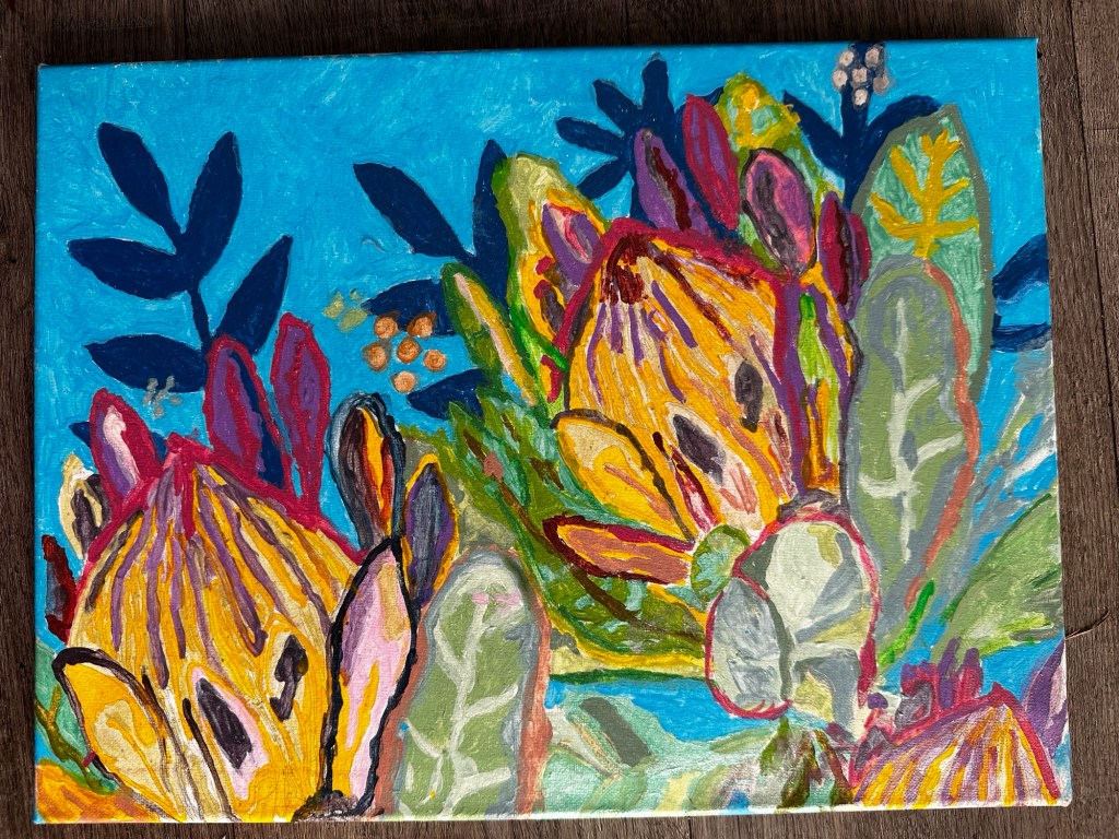 Then she got put one the pension after meeting Marinus Jan Hubrechsen (pronounced Yan) in 1998 the man of her life for the next twenty six years. Then one day a week as an office worker for Territory Business Centre for twenty years; as a “Friday girl”. All this while working on her art. “I do it because every work is a mystery and an adventure; you never know how it’s going to turn out.” Dana stated drawing after taking art classes at the Hub and Casurina Secondary College. “Abstract just comes natural, it comes from my subconscious.”