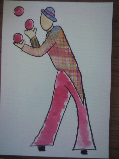 Now I am putting the clown aside and taking up painting and drawing. Pen, pencil and water colour on paper; cheep and easy to stow away. I have my writing to work on. I’ll get my first novel written some day