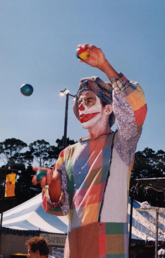 In 1999 I end up getting a ride on the navy boat to East Timor to do some clowning. I end up getting stuck there creating a real mess. They had to get me out off Darwin and my parents in Queensland are offering to take me on. I end up getting involved with festivals. Well paid and a lot of fun when the work comes in; but it is a long while between gigs. Then this circus rocks up. It’s not the greatest show on earth and there obviously wasn’t much money in it. But regular work and an escape from my parents back yard were appealing so I was a genuine circus clown for twelve years.